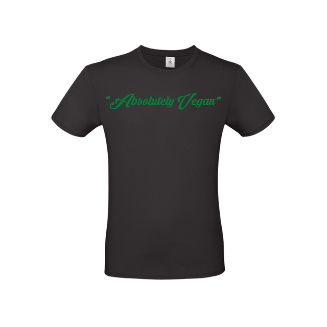 Black with green Absolutely Vegan logo to front